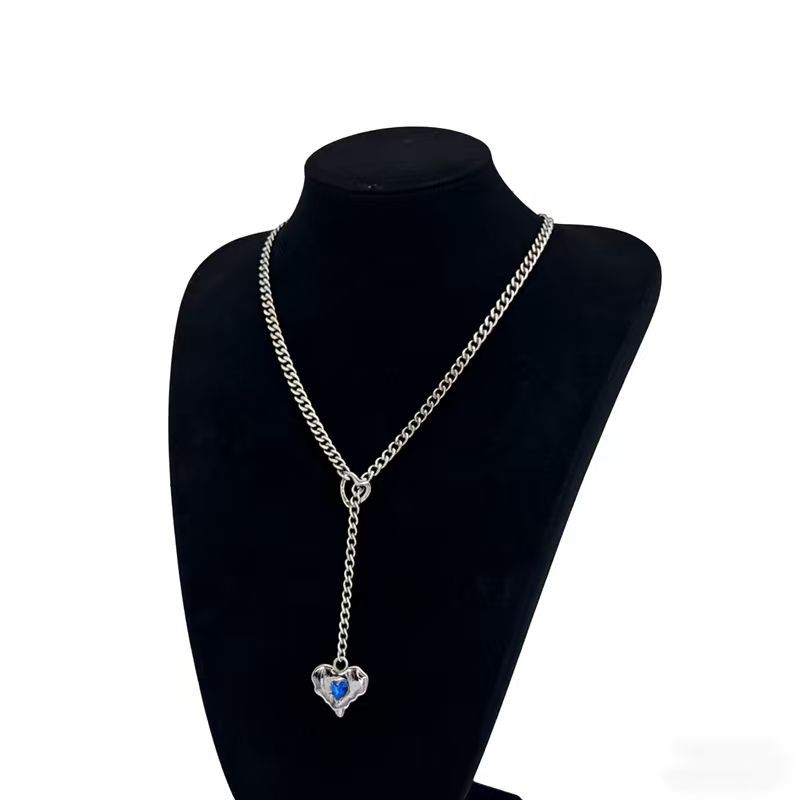 Fashionable Blue Sparkling Diamond Heart Pendant Necklace